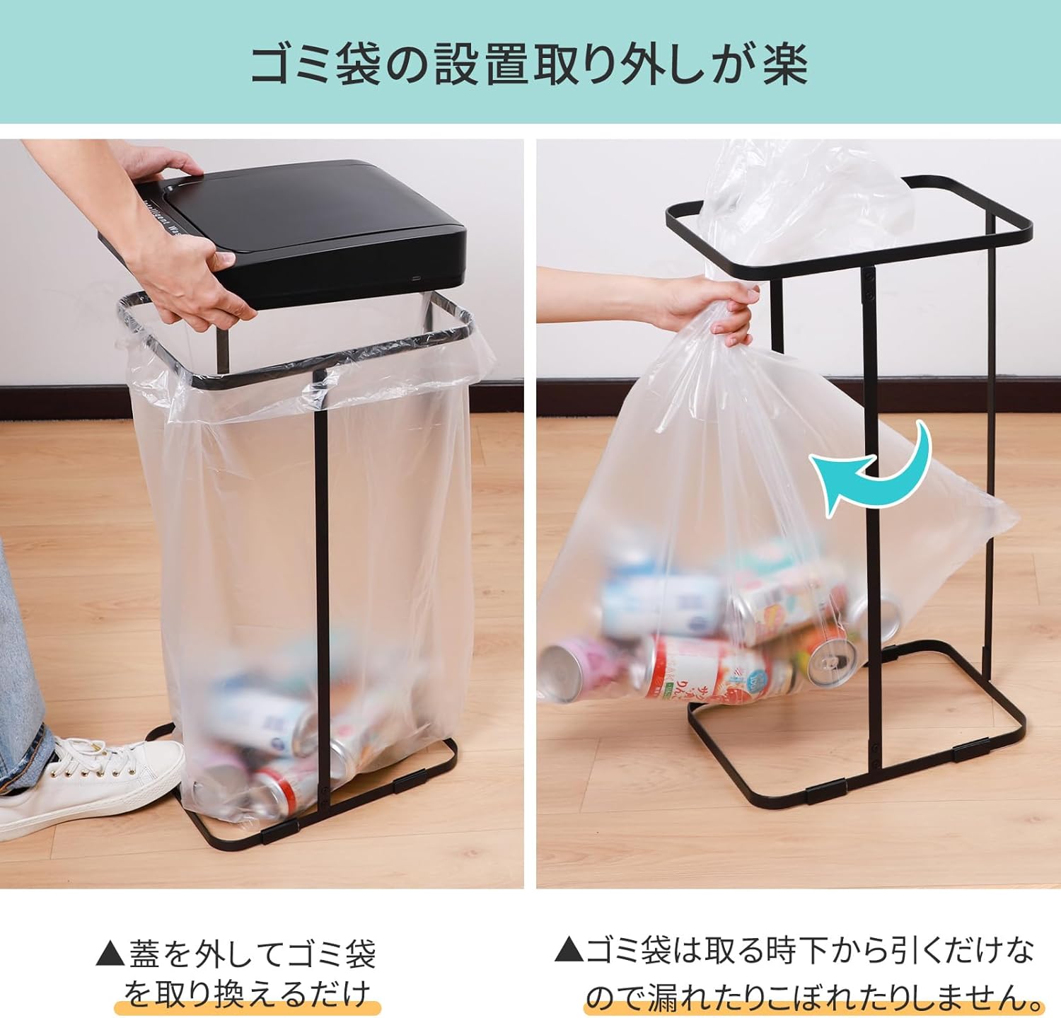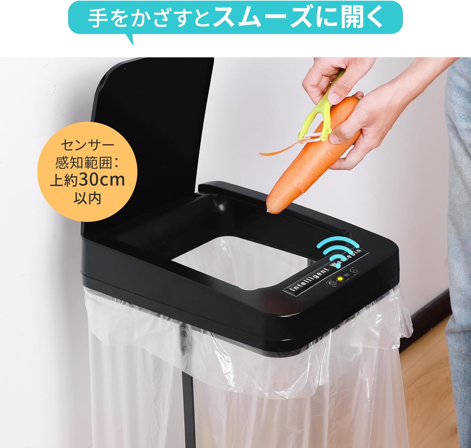 【自動センサー×ゴミ袋ホルダー】🌟ご注意:蓋操作パネルの表面に透明保護フィルムを剥がせる。🌟センサーの上方30cm付近に手をかざすと自動でフタが開き、約5秒後にフタが閉まります。不要な接触を控えることができるため衛生的です。両手がふさがっていてもフタが自動開閉するので、楽にごみ捨てができます。ボタンを押すと手動でも開閉可能、蓋を開けたままで作業したい時に便利です。一般的なゴミ箱と違って、外装がなく中身が見えるタイプで、ゴミの溜まり具合が一目瞭然なので、捨てるタイミングも計りやすいです。