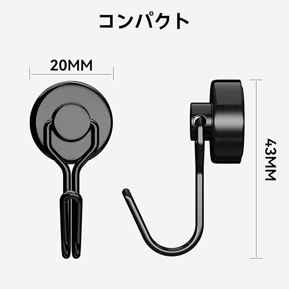 • 【強力な磁力でしっかり固定】のマグネットフックは、垂直耐荷重10kg、水平耐荷重3kgの強力な磁力を持ち、冷蔵庫横、扇風機、バスルーム浴室用品などの吊り下げに最適です。ゴミ袋やバケツなどの軽量アイテムから、鍵やキッチンツールまで、さまざまな用途に対応します。