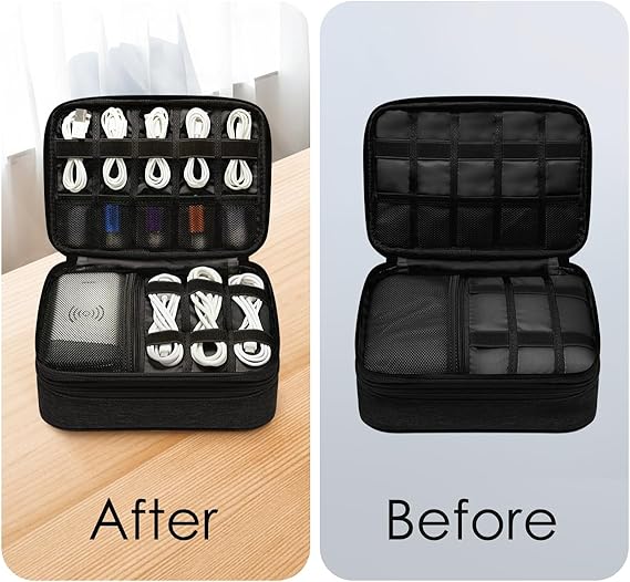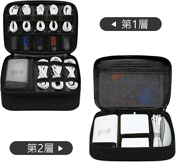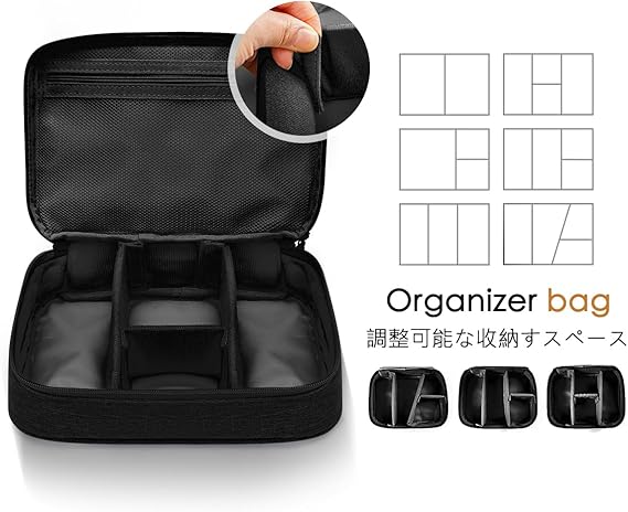 整理整頓に最適: このガジェットポーチは、ケーブル、充電器、イヤホンなどの小物を収納するのに最適な設計になっています。文房具、化粧品の収納にもバッチリ。ファスナーはダブルファスナーです。上下に大きく開いて中身が見やすく、ひと目で全体を確認できます。