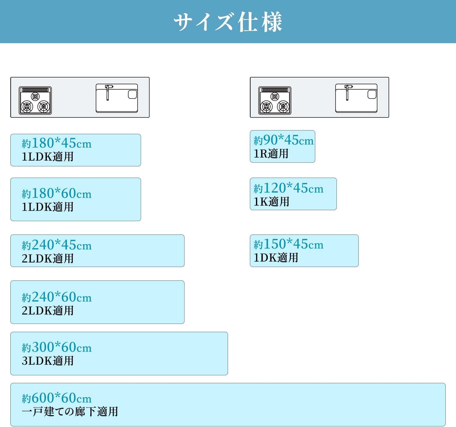 • 場所に合わせてカット可能:1LDKのキッチンに余裕なく、最適です。また、45cm×180cmサイズなので、使いたい場所に合わせてサイズを自由にカットし、ダイニング、オフィスデスク、床のキズ防止用に役に立ちます。汚れやキズをつけたくない場所にピッタリ合わせて敷くことができます。ヒント: 記載されているサイズは規定値です。個体により若干の誤差((1-2cm))が発生致しますので、あらかじめご了承下さい。
