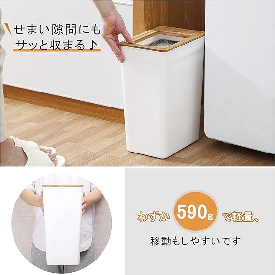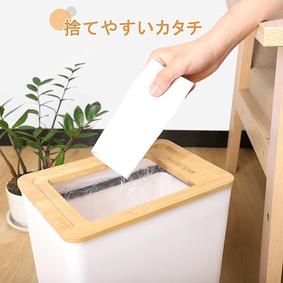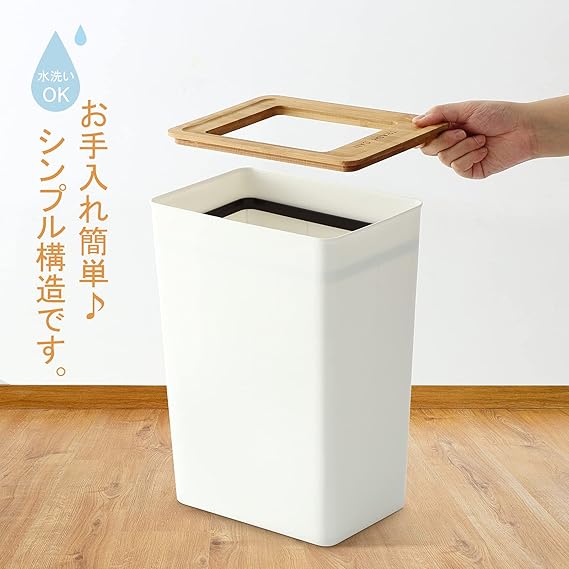 • 【竹製のフタ付き】竹製のきれいなフタがさりげないアクセントに、フタは載せるだけ。竹の特徴は抗菌性・防臭性に優れて、臭いや菌の繁殖を抑えて衛生的に使えます。ゴミの投入口は11.6×15cmがあります、手が汚れていたり、両手がふさがっている時でもフタを開ける手間がかからないので便利なゴミ箱です。
