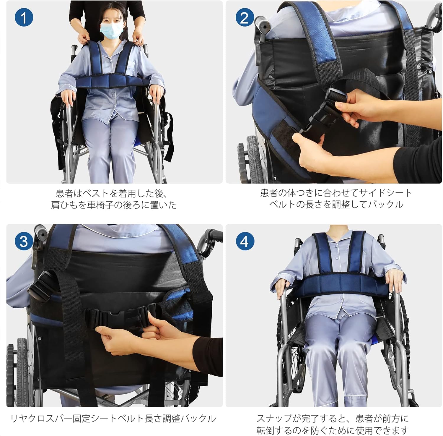 【介護効果】椅子・車いすに固定されている利用者を固定し、傾きや転倒しにくく、怪我のリスクを軽減するように設計されています。