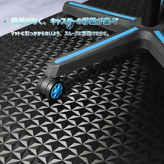 • 【ベスト厚さ1.5mm・騒音対策】1.5mmの厚さで、キャスターが引っかからなく、沈み込まないよう、方向転換も自由自在に移動できます。段差が気にならない、ロボット掃除機も引っかかることなく、ストレスフリーでお掃除が楽々。大きなキャスターの回転音を軽減することもできます。集合住宅ではマストアイテムです。夜中にゲーミングと作業するときは、騒音を心配することがなく、やり続けます。ヒント:裏面はツルツルのデザインで、しっかりと床面に吸着されますが、畳/カーペットの上には吸着不可です。ご了承くださいますようお願い申し上げます。