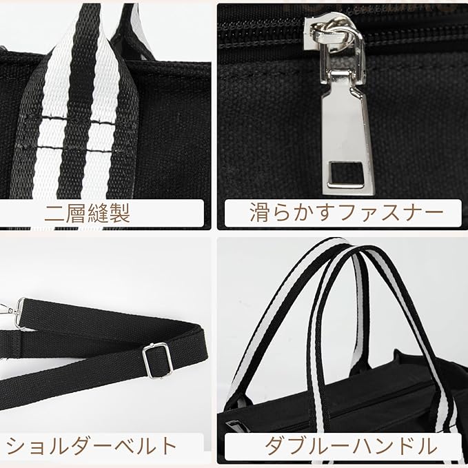 トートバッグ日常の必需品をまとめて収納できる大容量のトートバックです 通学バッグはもちろん、ビジネスバッグとしてもピッタリ ファスナー付きので貴重品なども安心です。 年齢を選ばないシンプルでミニマルなデザインのトートバックです 外観は簡潔で、気前がいいです。