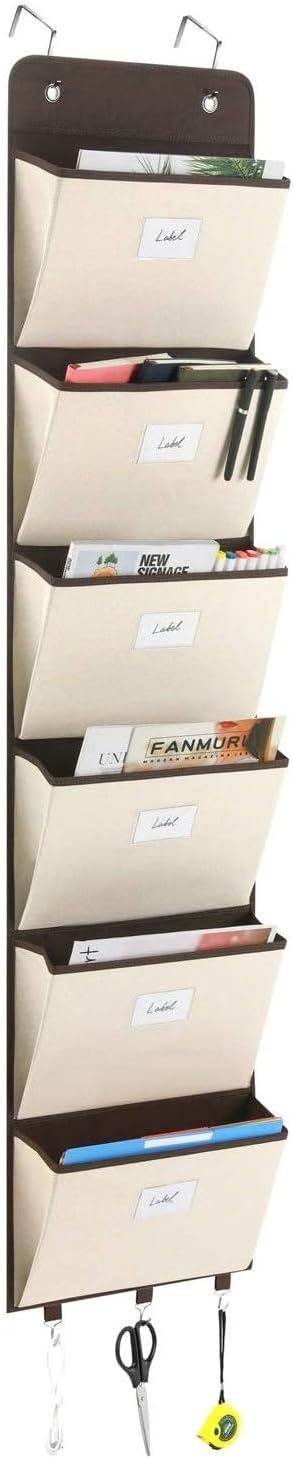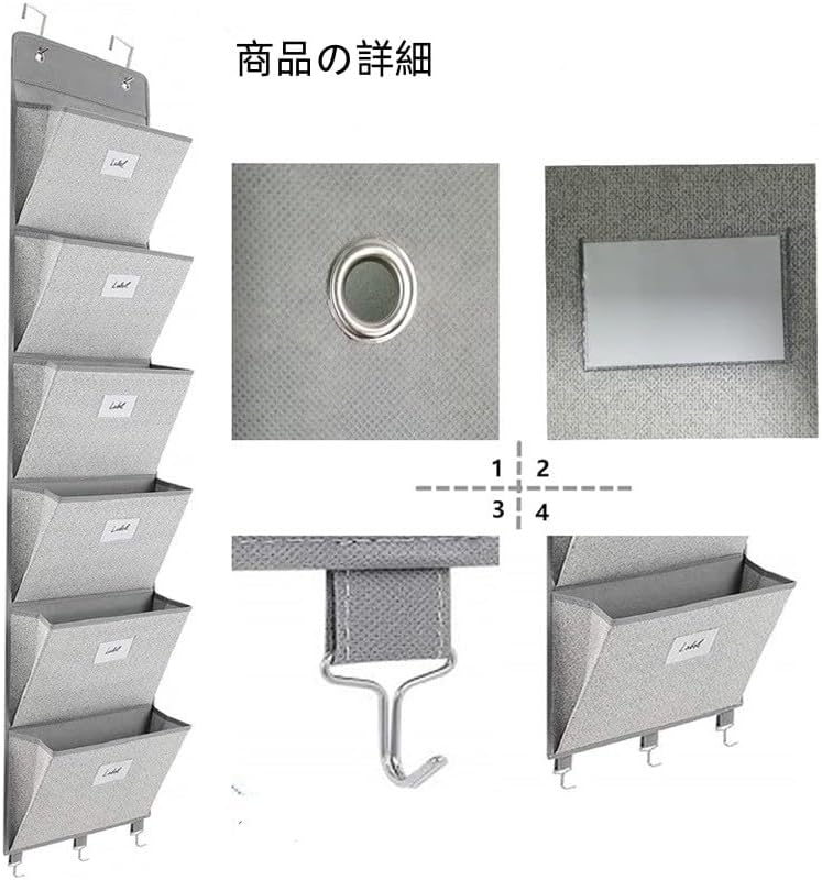 ドア掛け収納式ポケット 6段の大容量 壁掛け収納ポケット 吊り下げ収納ポケット 頑丈な不織布で作られた 耐用 小物収納 おもちゃ 雑誌 書類/漫画などの収納 (ホワイト)
