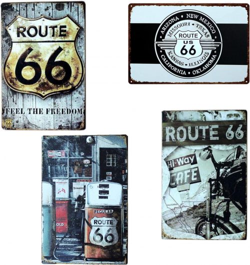 Yヤクニタツ アメリカン 雑貨 ルート66 メタルプレート ブリキ 看板 4枚セット アンティーク レトロ