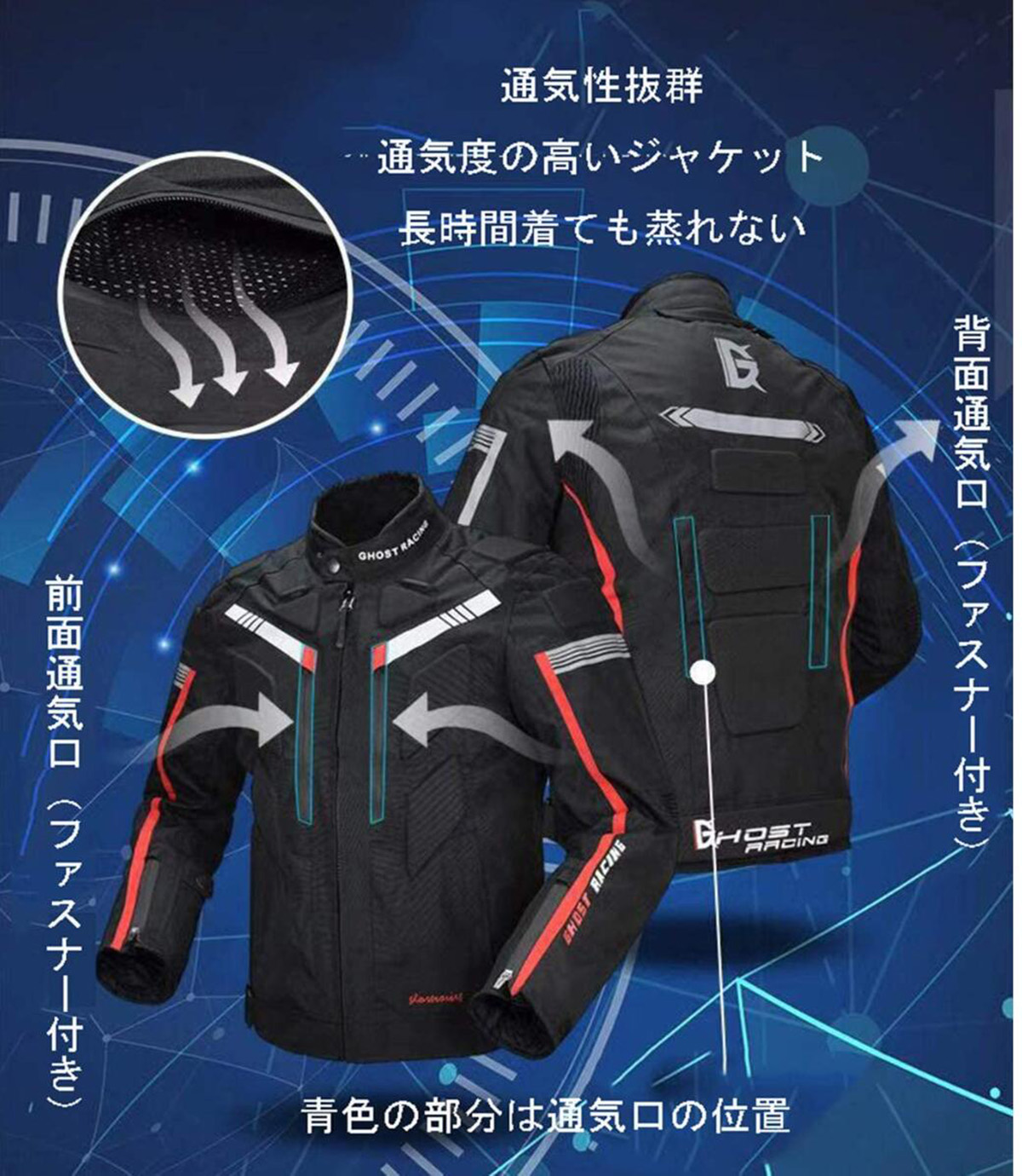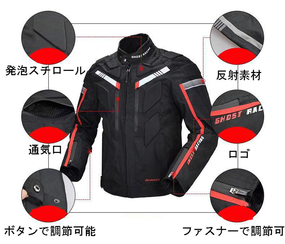 ・脱着可能なインナー防寒着付き・プロテクター5点セット・光反射素材リフレクター付き