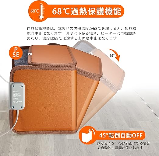 - 【45°転倒停止&4時間タイマー】本製品には45°転倒防止機能が搭載されており、横置きや逆さ置きなど、45°以上の角度で傾けると正常に電源が入らなくなる。 本製品は立てた状態でのみ正常に使用できます。表面がパネルで覆われているため、熱くならない、お子様やペットがいる家庭は心配なく購入できる一品です。また、電源に接続してから4時間を経ちますと自動的にオフ、消し忘れるもご心配要りません。それと、使用中に温度が高くなりすぎると(70°±5°)自動的にオフします