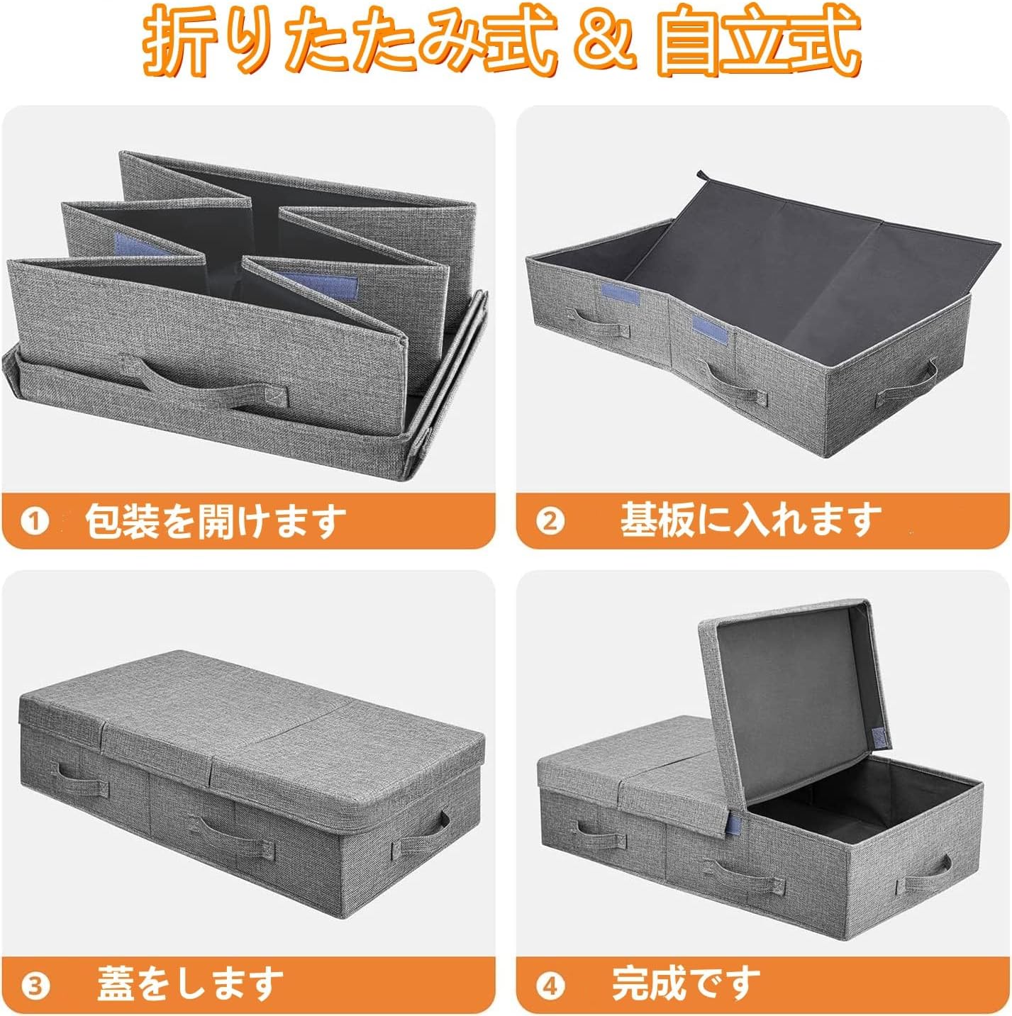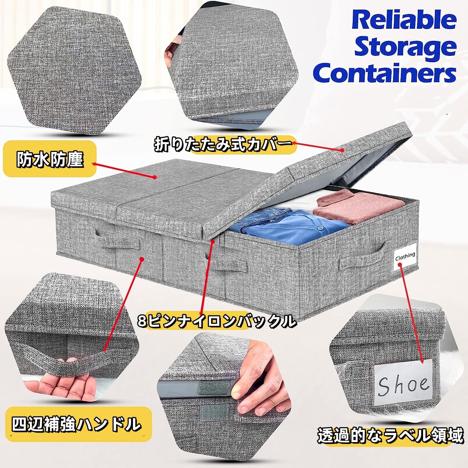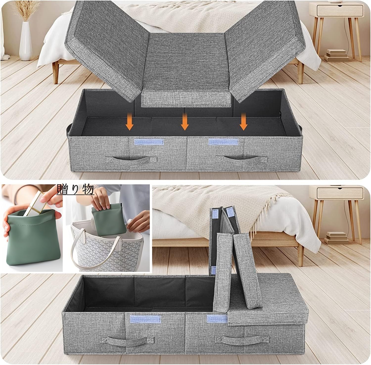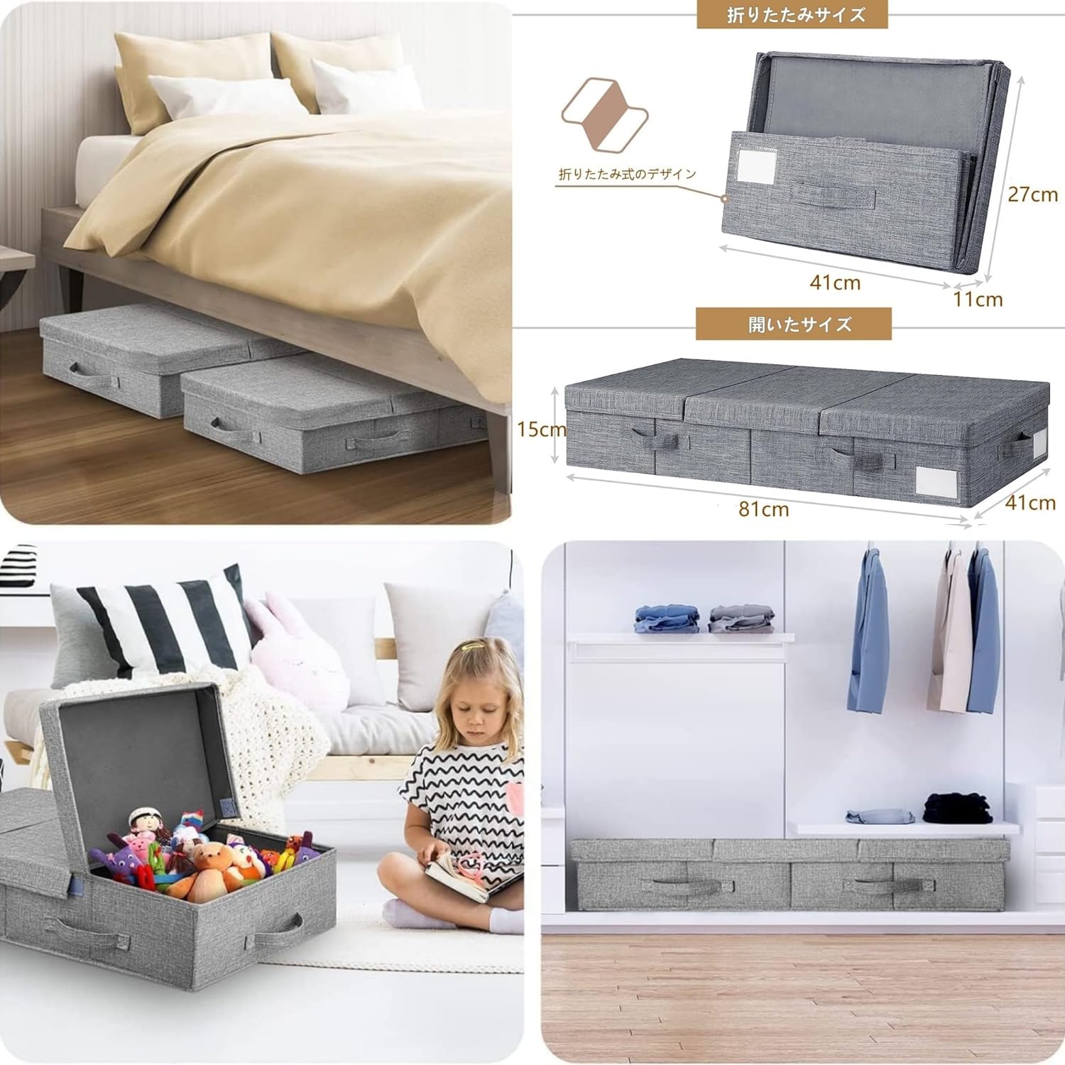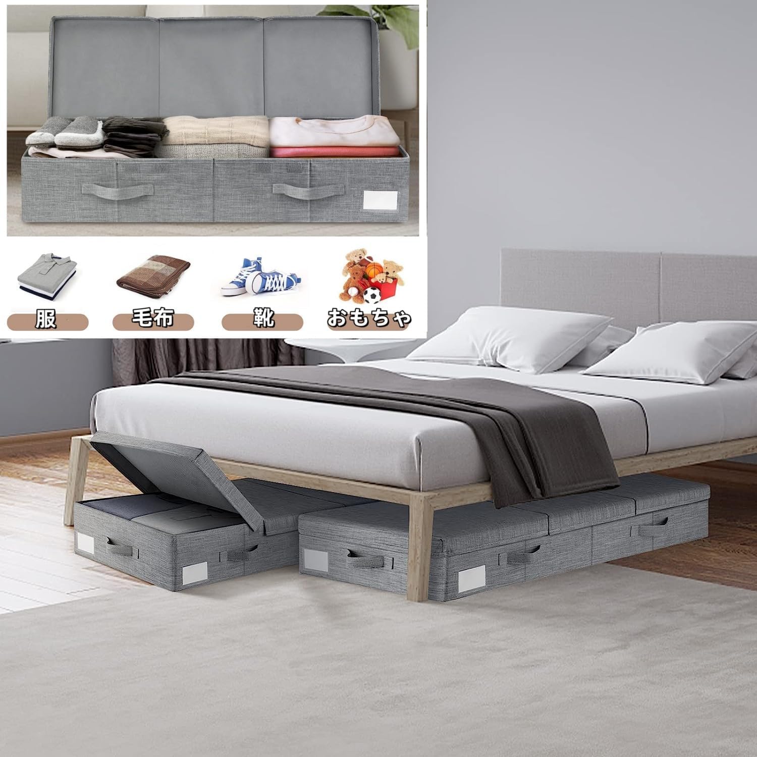 ベッド下収納ボックス 2個セットー綿麻 特大容量 ベッド下収納ケース 強固なプラスチック側壁板と厚い底 積み重ね可能 環境にやさしい 洗える ベッド 衣装ケース 収納ボックス 衣類収納 布団ケース 収納 強化ファスナー 折り畳み 通気 耐久性 グレー, 幅81×奥行41×高さ15cm 2点セット