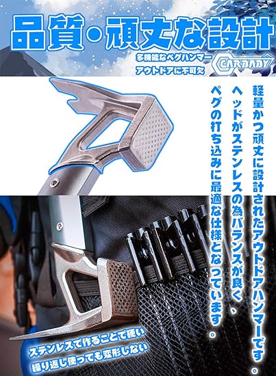 【多機能対応可能】ペグの打ち・抜けはもちろん、栓抜き機能も搭載、幅広く活躍してくれます!