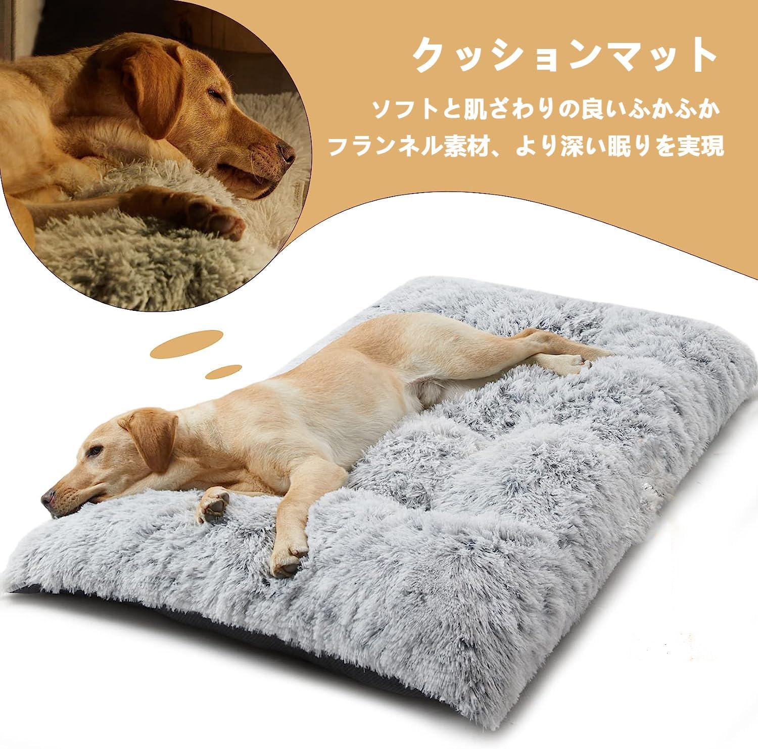 【ふわふわであったかい素材】このペットクッションの表面は4cmの柔らかな長毛素材を採用しており、ぽかぽかで肌ざわりよくてあったかい、中には高反発のPP綿をたっぷり充填し、軽くて滑らかな心地よさです。寒い冬にも熱量を失わなくなって、ペットの体温を維持することができます。もこもこなので、冬寒さ対策として大人気。愛犬愛猫がぐっすり眠れます。