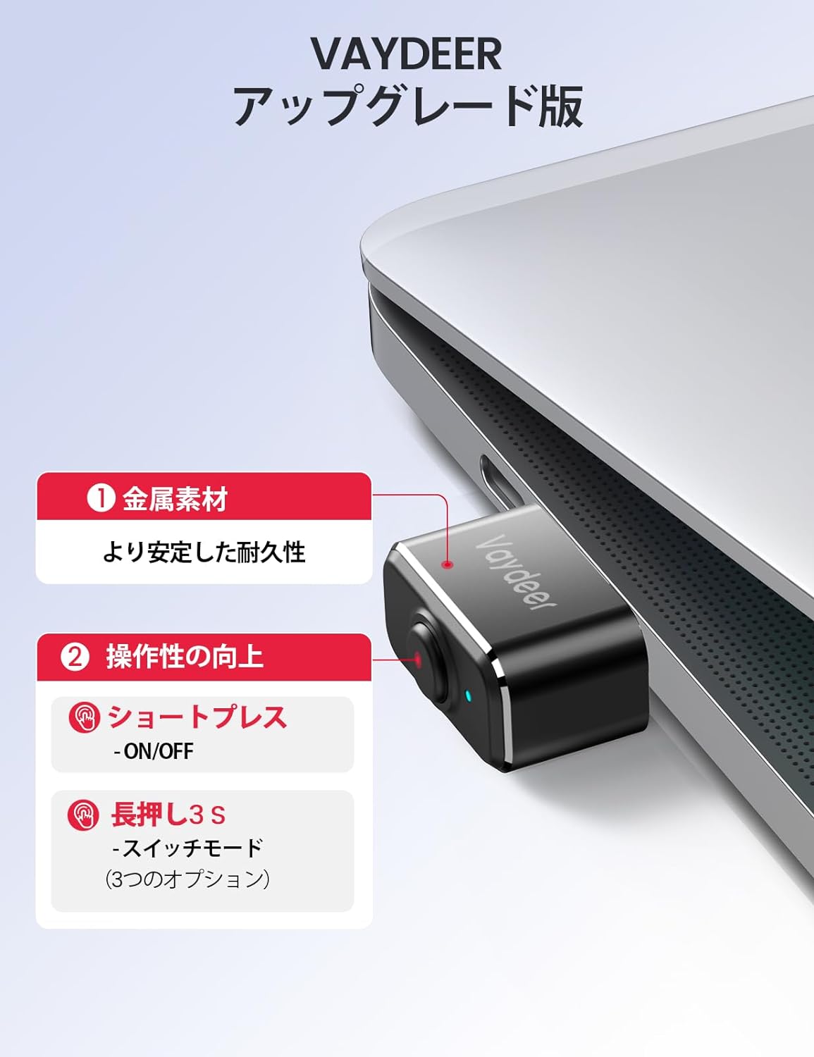 寿命を延ばすためのアップグレードされた金属シェル:このアップグレードされたUSBマウスジグラーは、耐久性のあるアルミニウムメタルシェルが装備されており、スタイリッシュでありながら頑丈です。シェルが壊れることを心配する必要はありません。また、この金属製のマウスジグラーは超ミニサイズで、Bluetoothレシーバーほど小さいです。ほとんど目立たず、持ち運びに便利で、誰も気づかずどこに行っても使用できます。