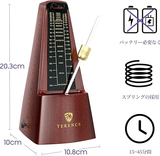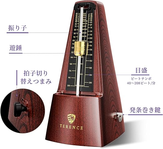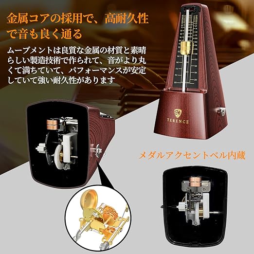 - 「絶妙な機械構造で作られた振り子式メトロノーム」本メトロノームのムーブメントは良質な金属の材質と素晴らしい製造技術で作られて、音がより丸くて満ちていて、パフォーマンスが安定していて強い耐久性があります。さらに、メトロノームは精密なスプリング駆動構造を採用しており、バッテリーを必要とせずに正確なビートとリズムを提供します。