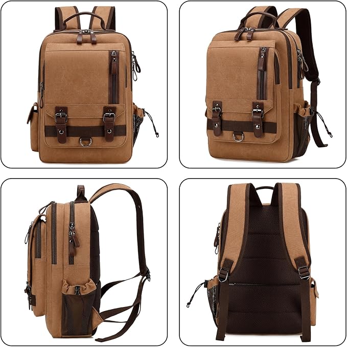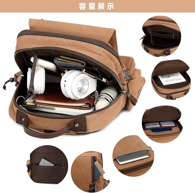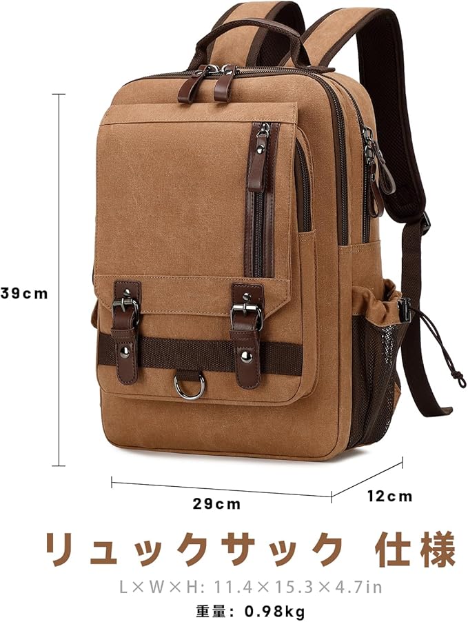 - [デザイン] 全体的にPUレザーを飾って、ヴィンテージな雰囲気を感じします。撥水加工した帆布を採用し、耐摩耗性、耐久性を実現して、軽い雨よる水滴や汚れも寄せ付けません。(完全防水ではないのでご注意ください)