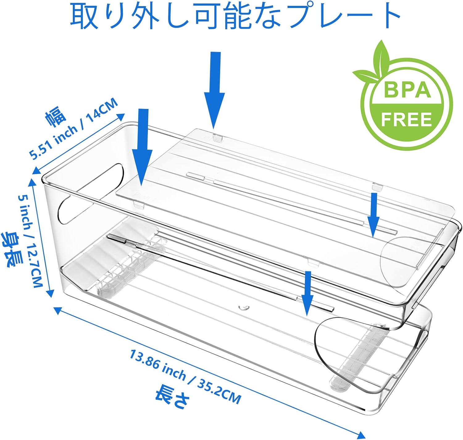 【重力スライド、大容量】重力傾斜設計で、タンクが上から下へスライドしやすく、取りやすい。先入れ先出しの原則に従って、新しい缶を上に置いて順番に食べるだけでいい。総容量は10本のソーダ水を収容でき、大容量貯蔵の需要を満たすことができる。