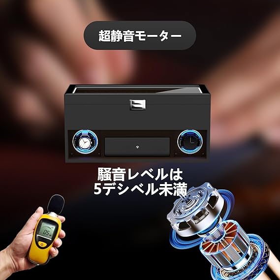 - 📻「高品質レザー&超静音」–このウォッチワインダーは汚れに強い、傷がつきにくい高品質PUレザーを使用しており、重厚感と耐久性を兼ね備えています。また、超静音モーターを搭載しており、稼働音もほぼ無音で、定期的に巻き上げてくれます。寝室やオフィスに置いても静かに滑らかに動作し、静かな環境を保ちます。