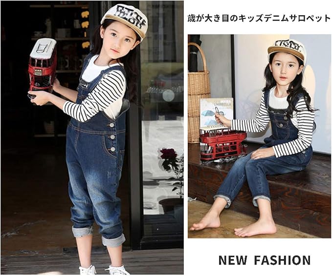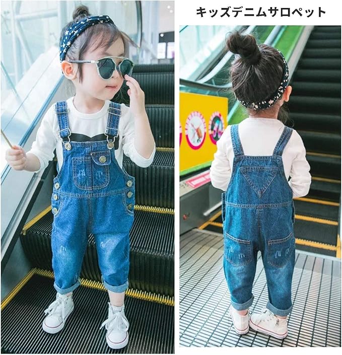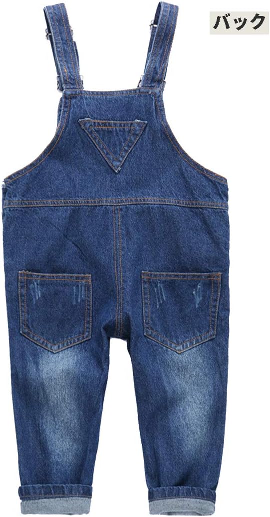 経典組み合わせ簡単子供デニムオーバーオール、綿100%デニム布砂洗、ミッド;