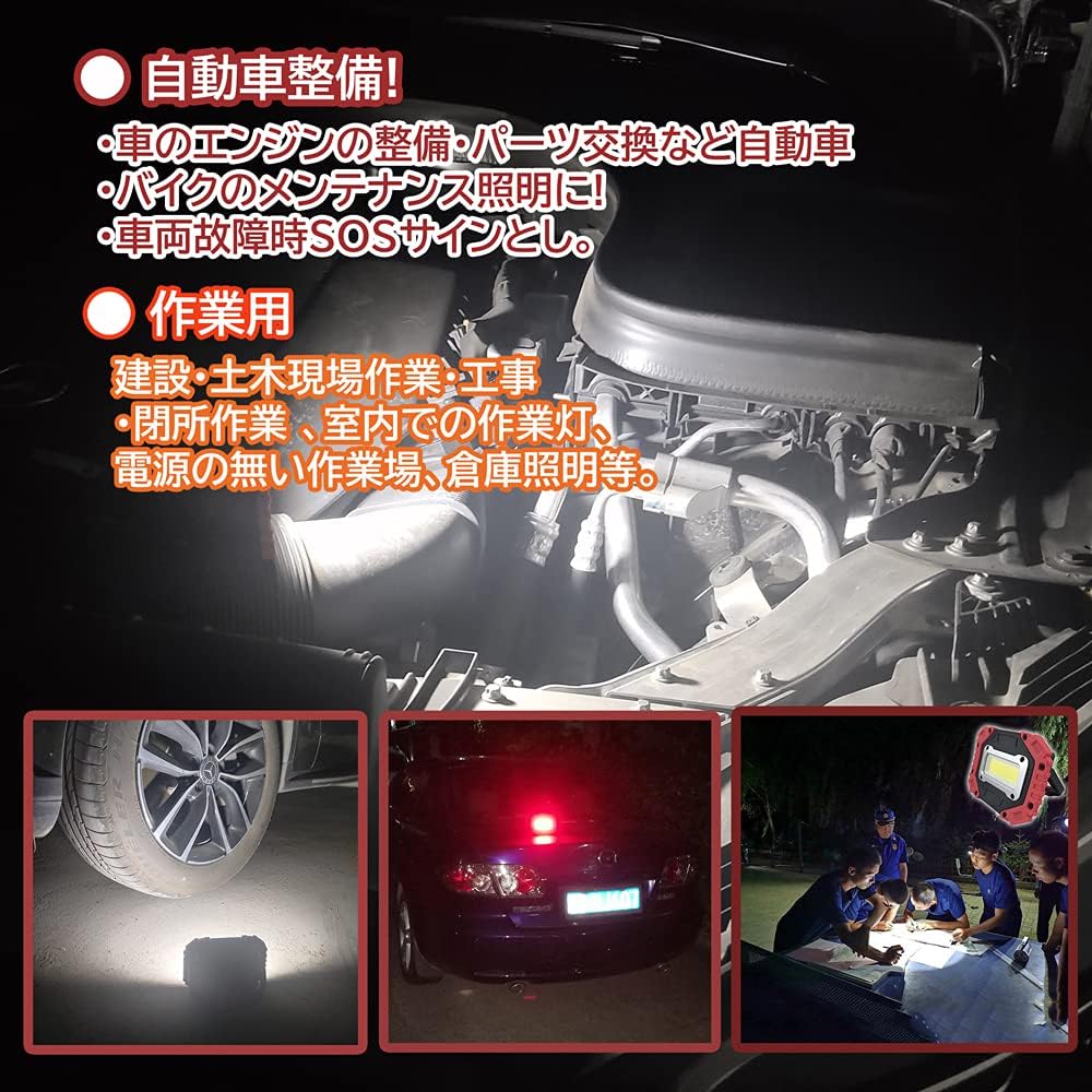 投光器ledライト 単三乾電池式 作業灯ワークライト キャンプ点滅赤い光SOS警告 cob高輝度16W 800LM ポータブル小型軽量 折り畳み式 6段階調光 現場工事 非常用防災 火山地震停電対策 夜間照明 倉庫 車の整備 屋外BBQジョギング