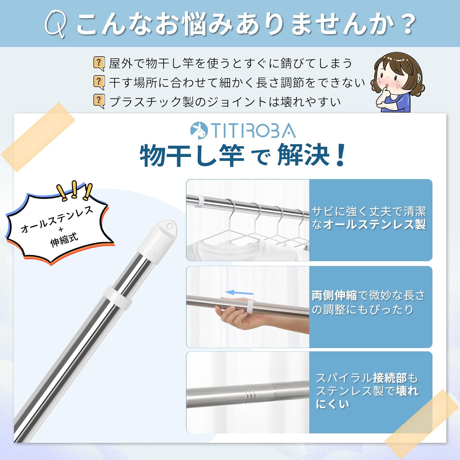 5.部屋干しと屋外干しのどちらにも使える物干し竿。