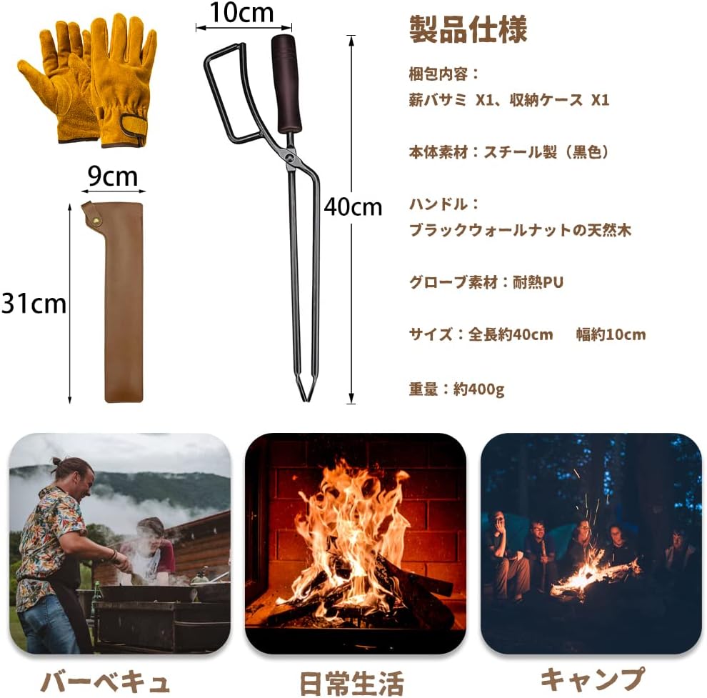• 【天然木製の持ち手】持ち手がブラックウォールナットの天然木製で、滑りにくく握り心地が快適で、熱伝導率が低いので、高温の炭などを扱う際も安心してご使用できます。