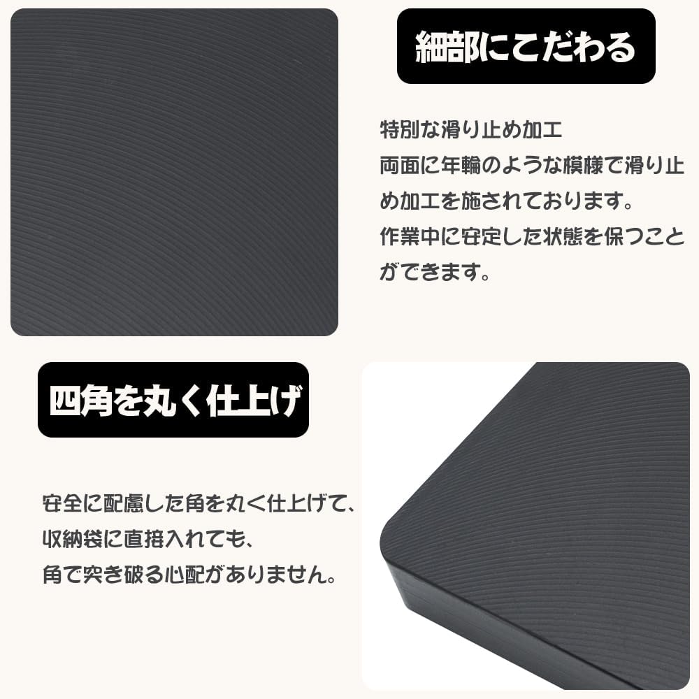 - 最強な新時代素材】防弾ベストの素材である樹脂を採用して、優れた耐久性の薪割り台が登場されています。材質の特徴により反発力があり、台からの反発力で衝撃を薪に伝えることができ、割りやすくなります。(直接地面に置くと、刃物の衝撃は地面に吸収されて、衝撃が薪に上手く伝わらず割りにくいです。)