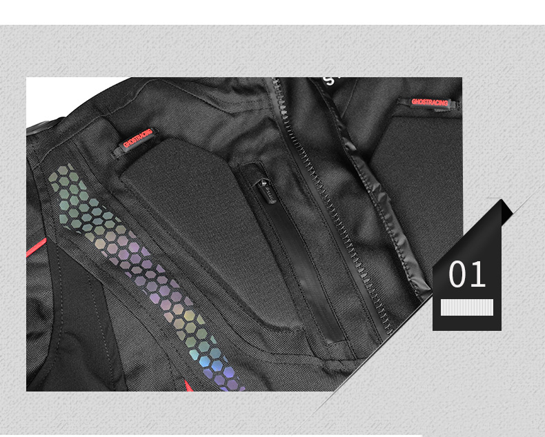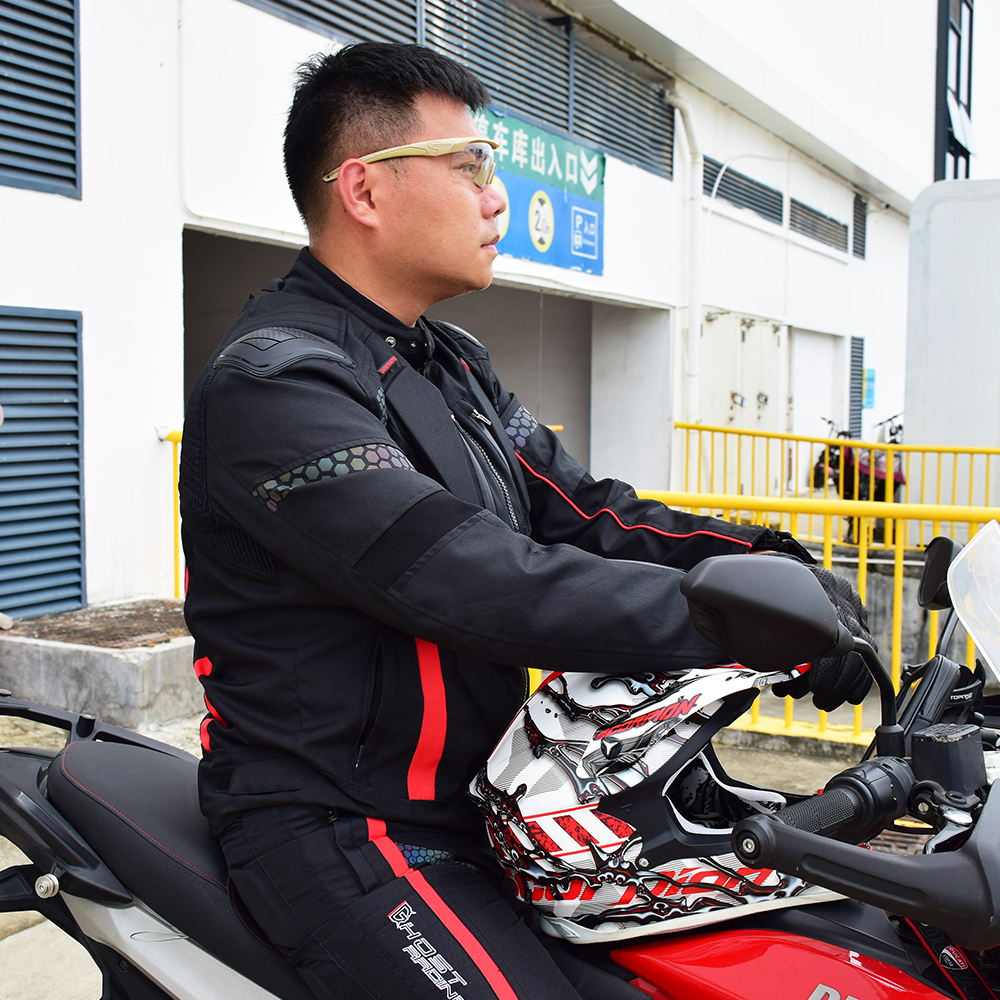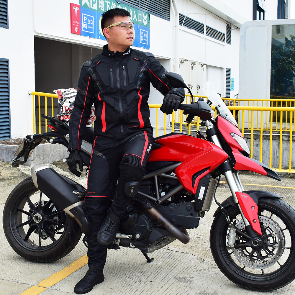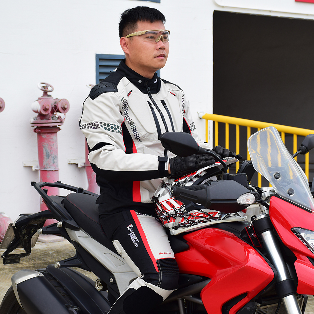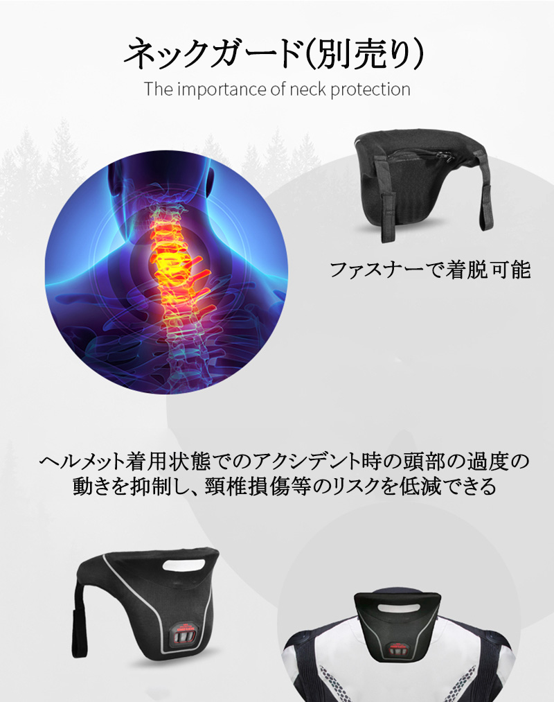 ジャケット及びパンツは、各所(写真参考)脱着可能なプロテクター付き<br>