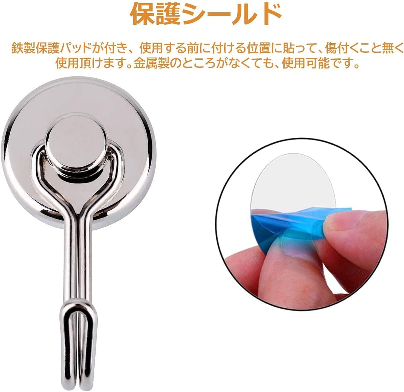 【どこでも簡単に使用】鉄製保護パッドが4個ついており、 使用する前に、付ける位置に貼って、傷付くこと無く使用頂けます。金属製のところがなくても、鉄製保護パッドを貼ることで使用いただきます。