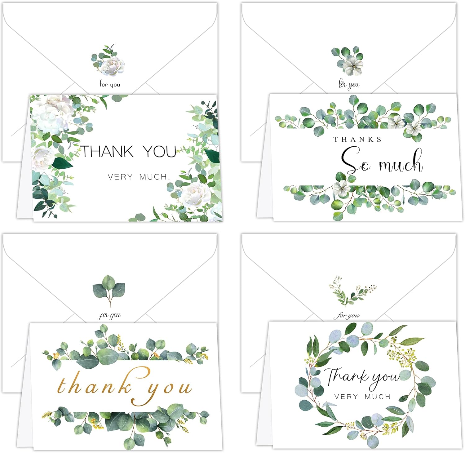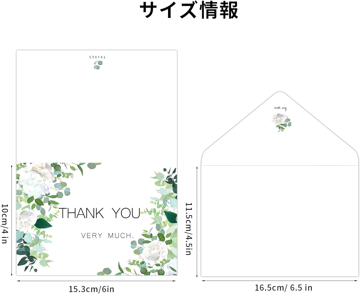 フルセット – 4 x 6インチの折りたたみサンキューカード48パック + お揃いの封筒。 各セットには、それぞれ 4 つのデザインのサンキュー カードが 12 パック入っています (合計 48 セット)。 カードはゆったりとしたサイズで、たくさんのスペースを書くことができます。