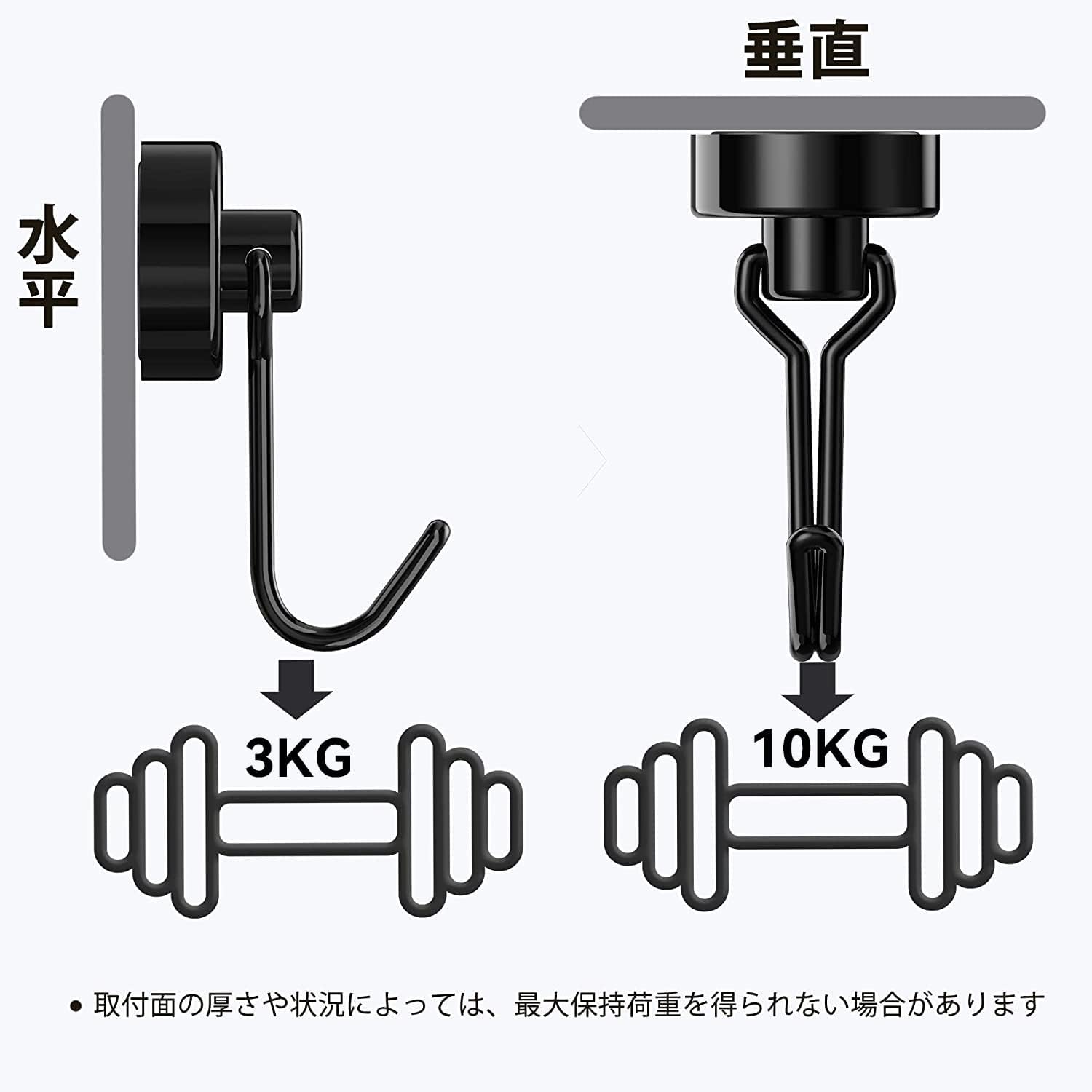 - 【強力磁力&垂直10kg&水平3kg】超強力磁石を搭載したことで、垂直方向耐荷重最大10kg、水平方向耐荷重最大3kgまで、様々な物を吊下げるのが可能です。