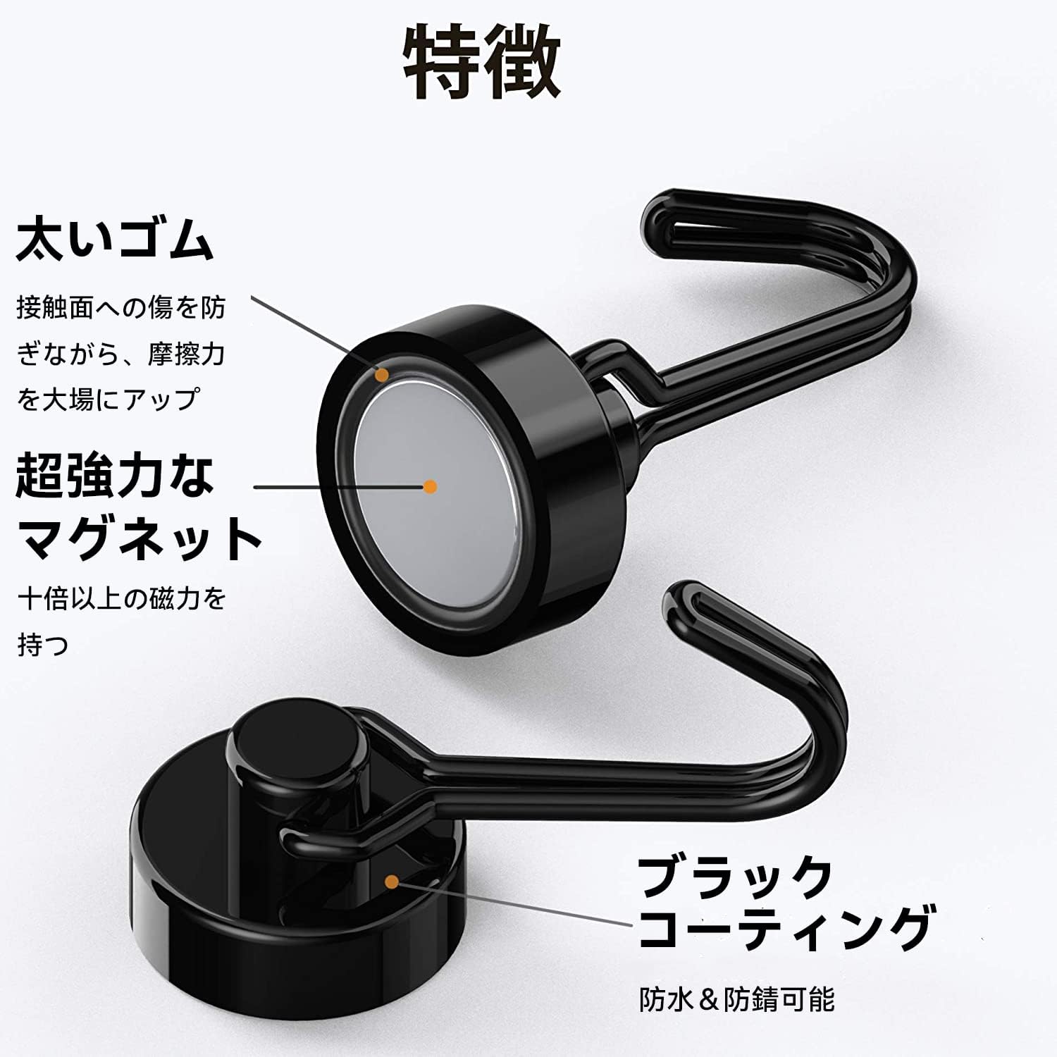超強力な磁石を採用し、通常のマグネットフックと比べて、磁力が何倍に持ちます。