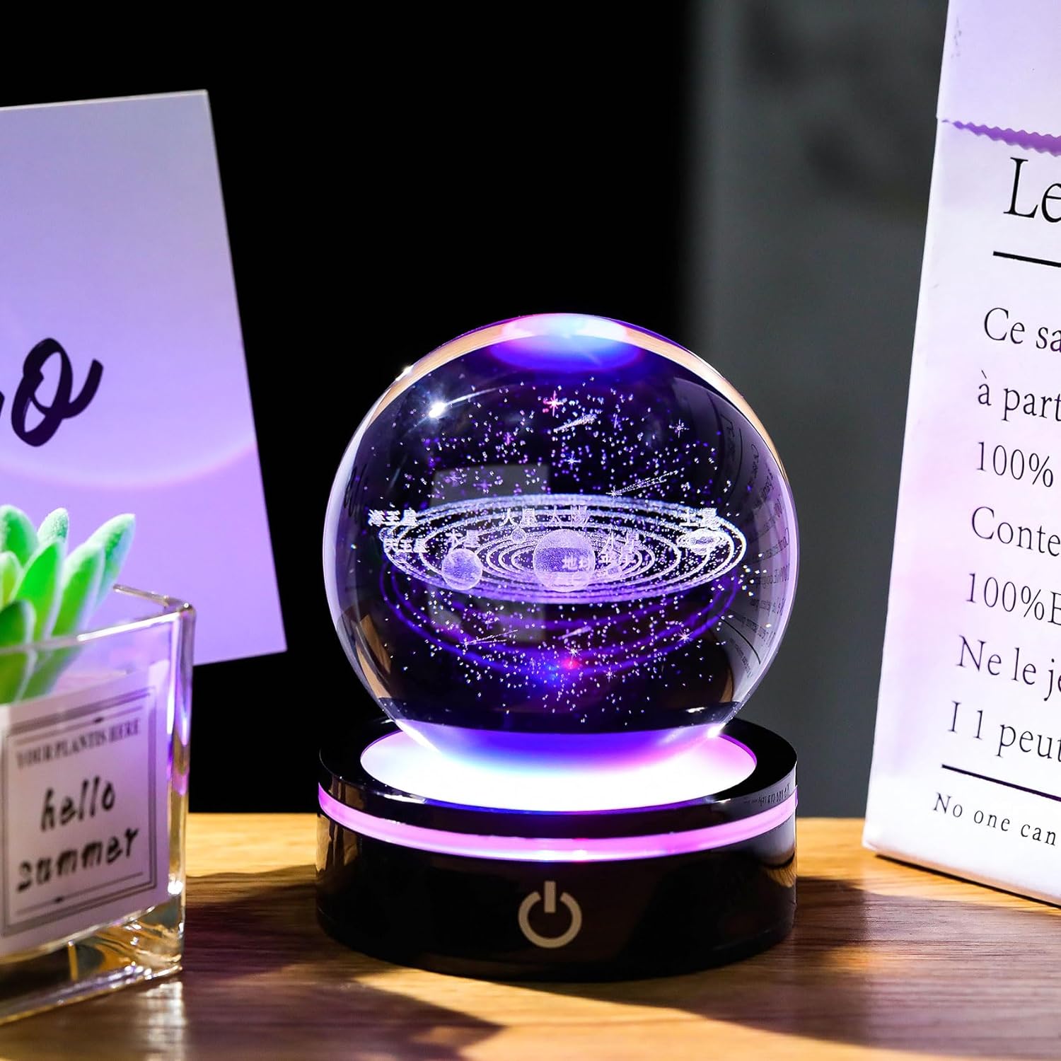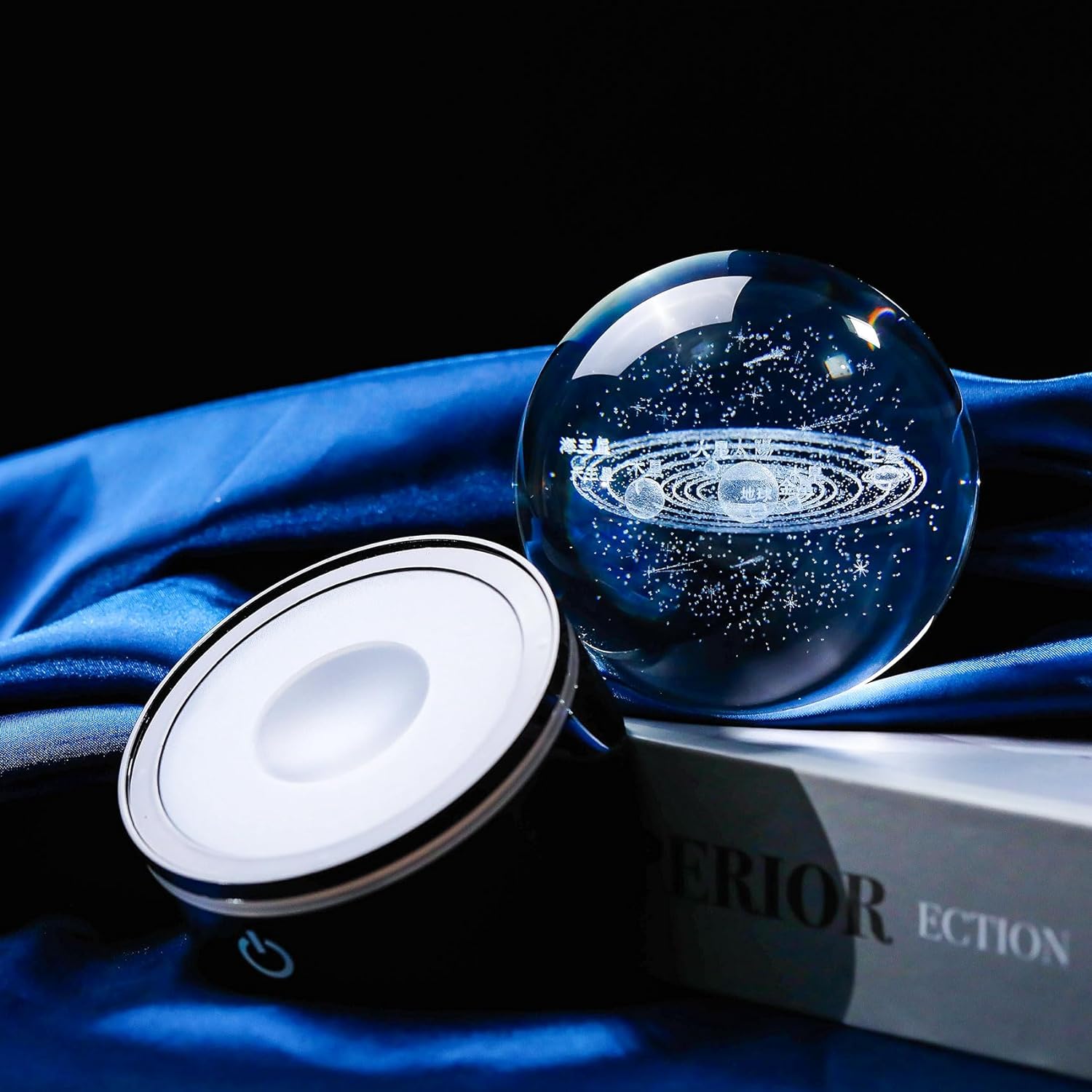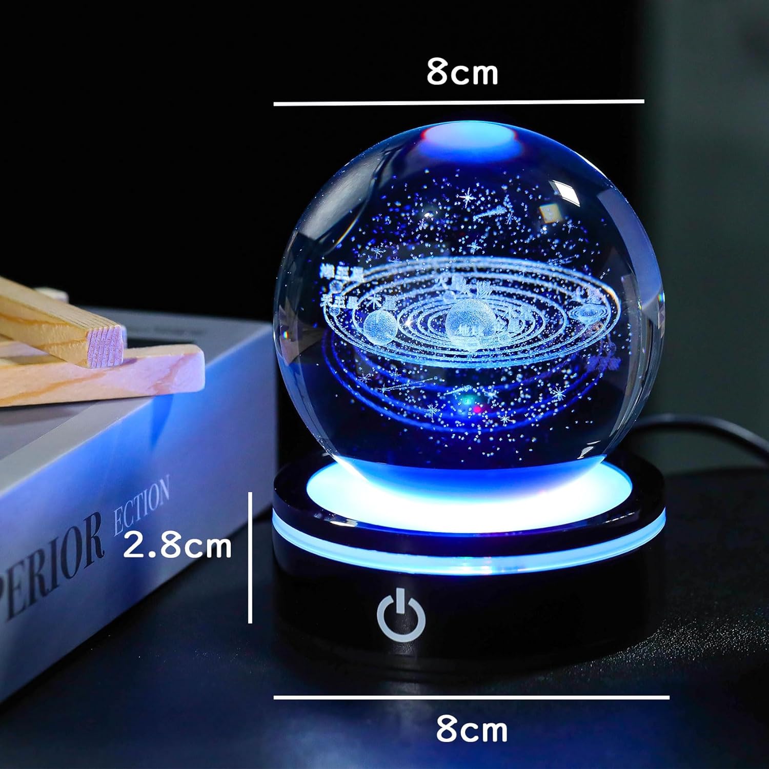 D宇宙 K9クリスタルボール 太陽系 模型 誕生日プレゼント 男性 女性 人気【正規品】インテリア オシャレ 癒しグッズ 水晶玉 LEDライトベース 間接照明 雰囲気作り 飾り 記念日 母の日 父の日 カップル 彼女 彼氏 子供 友達 ギフト