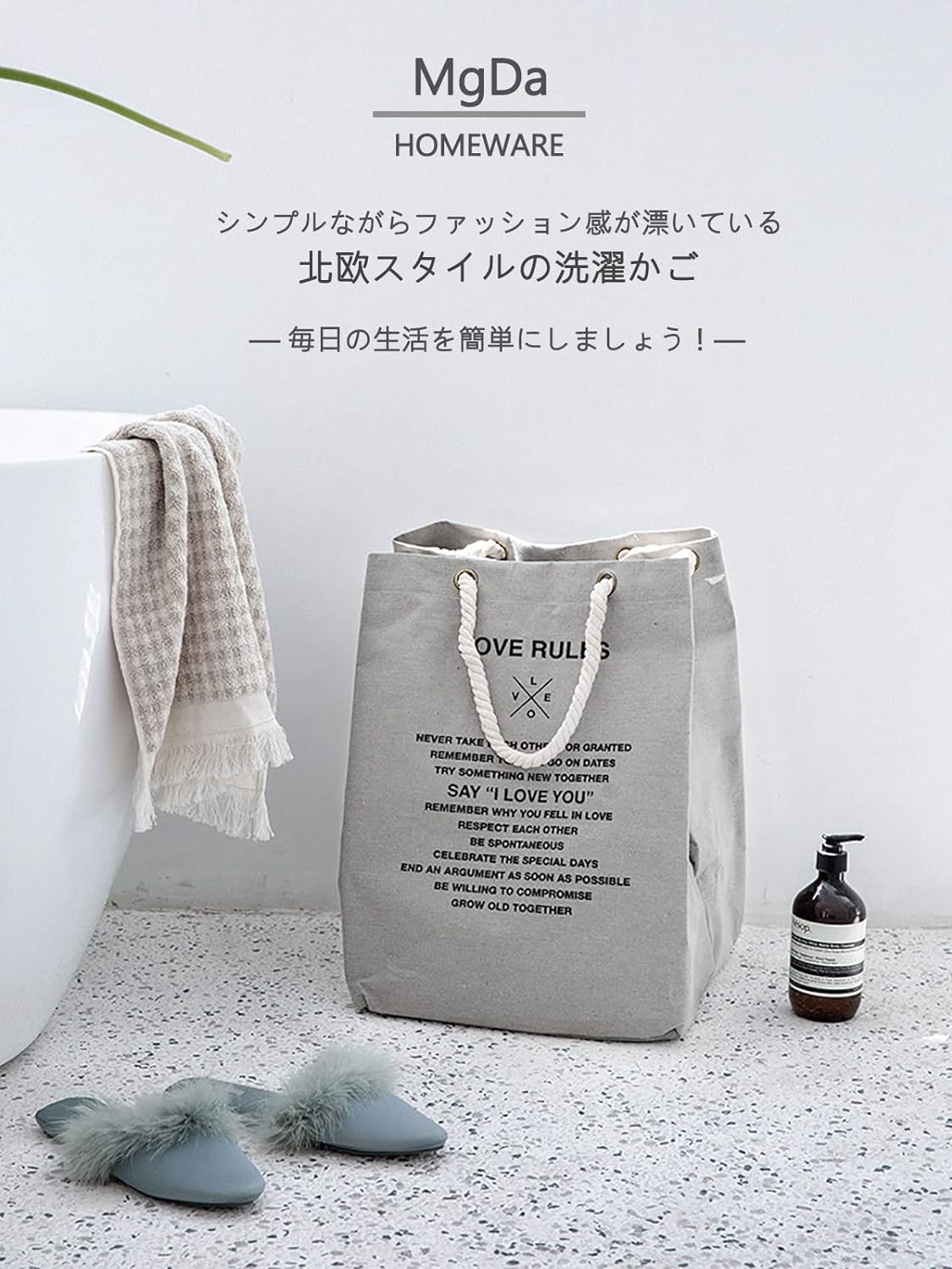 MgDa 洗濯かご ランドリーバスケット 取って付き 撥水 大容量 折り畳み式 綿麻生地 収納ボックス 軽量 省スペース (60L グレー)