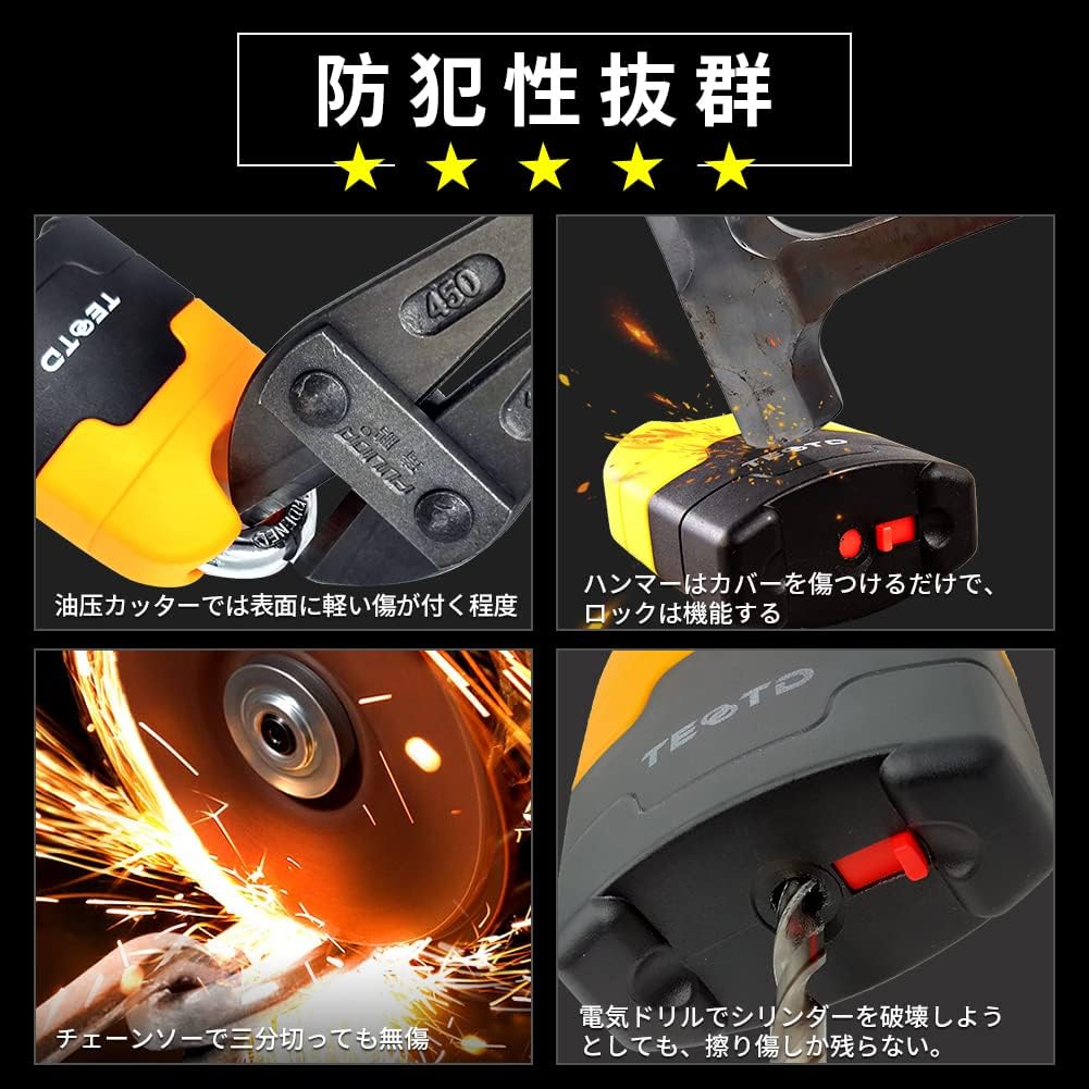 【素晴らしいパッドロック】市場上の通常のU型ロックと違い、小さい内径のパッドロックを採用します!内側は約25mmとなっており、ボルトクリッパーや油圧カッターが入りにくく、容易には切断されない!