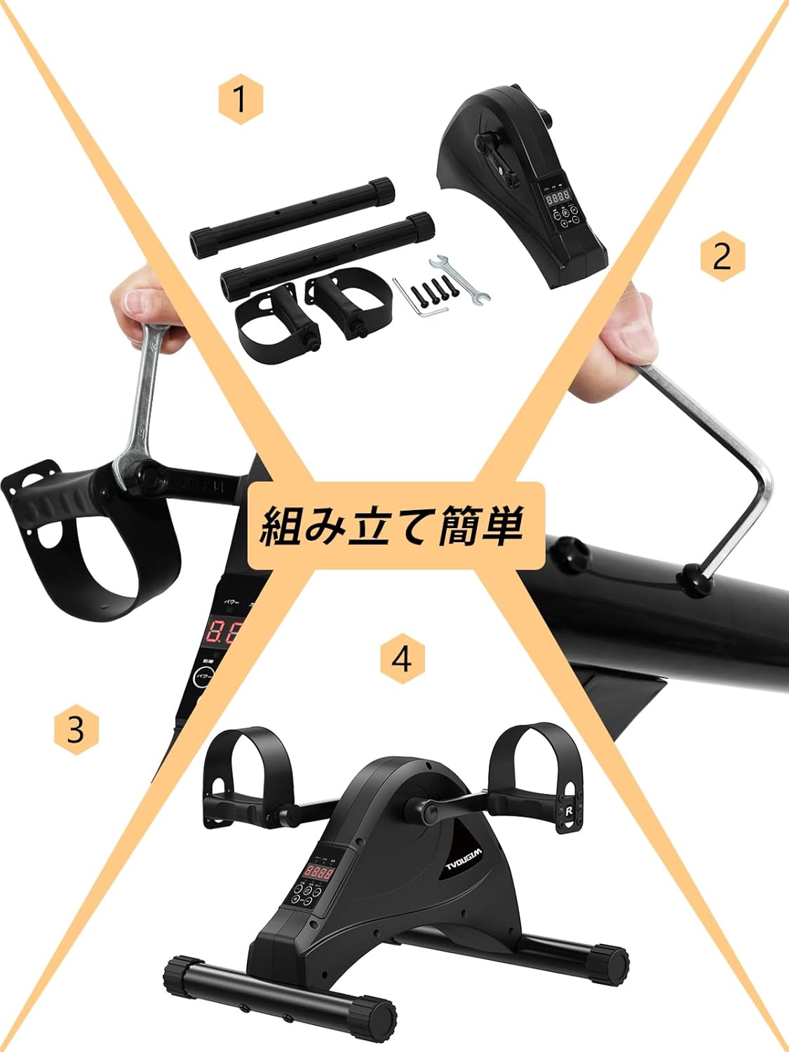 【組み立てと保管が簡単】2つのスタビライザーと1組のペダルを組み立て、初心者でも組立て簡単。小さいサイズ (40 x 34 x 26 cm) とコンパクトなデザインにより、このエアロバイクミニはどこでも簡単に配置できます。