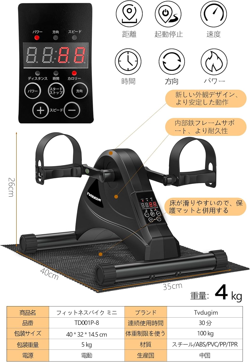 【電動回転】このエアロバイクミニには、自動と手動の 2 つのモード、前後の双方向回転、3種類の使い方、6 つのプログラム、6 つの速度調整があります。耐久性と静音性】フィットネスバイク ミニは、内部鉄フレームサポート、音がとても静かなので、より耐久性、より静かな使用できます。アップグレードおよび最適化されたモーターです。マンションやアパートでも安心、夜もご安心使えます。