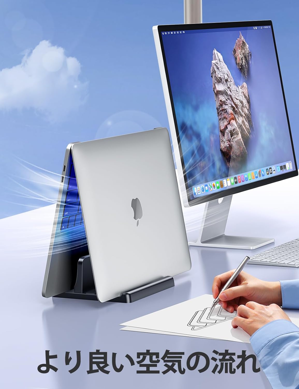 VAYDEER ノートパソコン スタンド PCスタンド 縦置き 収納 ホルダー幅調整可能 ABS樹脂製 for タブレット/ipad/Mac mini/MacBook Pro Air -ブラック