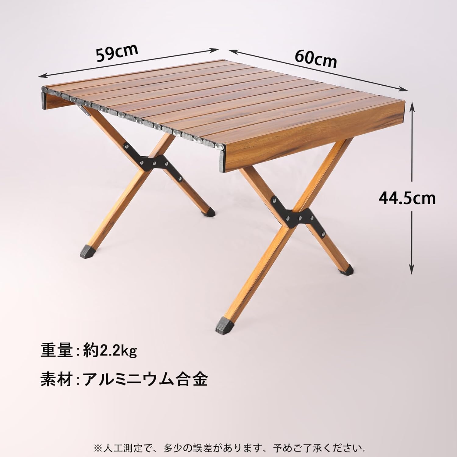 YOGOTO アルミテーブル アウトドアテーブル ロールテーブル 折り畳み式テーブル 木目調 キャンプテーブル 防水防錆 ウッド調 インテリア 超軽量 BBQ 運動会 お釣り ソロキャン 収納バッグ付き (60cm×59cm×44.5cm高さ)