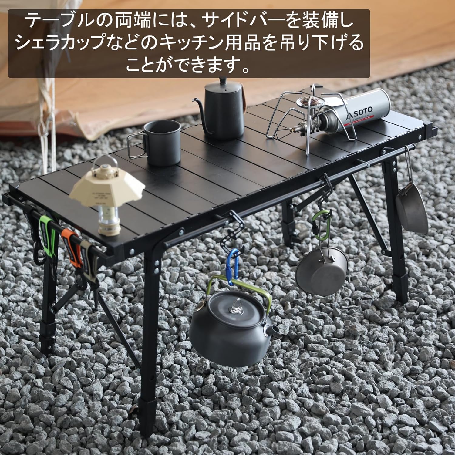 YOGOTO IGTテーブル アルミ 折りたたみ アウトドアテーブル 軽量 IGT互換 テーブル キャンプテーブル 3ユニット 30㎏荷重 高さ調節可 ロー ハイ 91cm×36.5cm×43.5~62.5cm サイドバー付き 防水 錆止め ソロキャン 焚き火テーブル マルチキッチンテーブ 釣り バーベキュー ピクニック対応 収納袋付き
